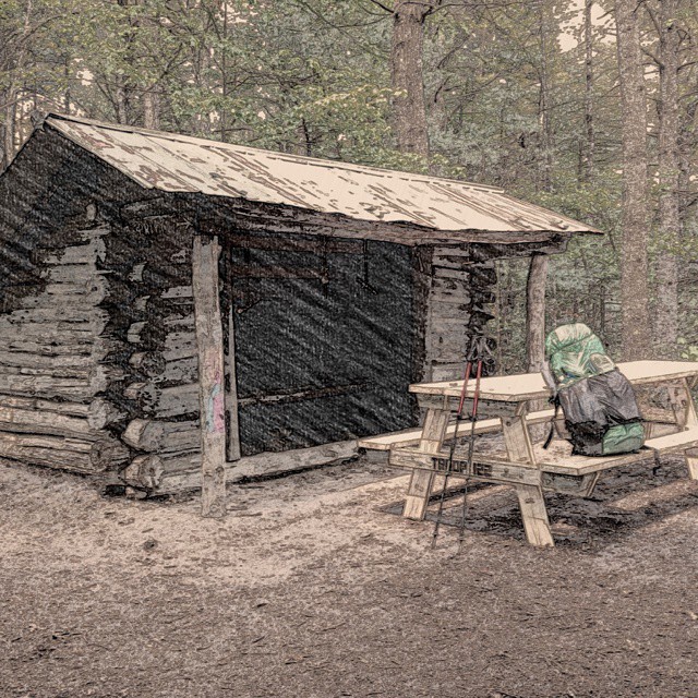 Deer Park Mountain Shelter just 3 miles south of Hot Springs, NC. I will be in or near the shelter tonight; probably near, as the logbook has many reports of mice in the shelter at night and of skunks trying to get in. Could be interesting. #at2015