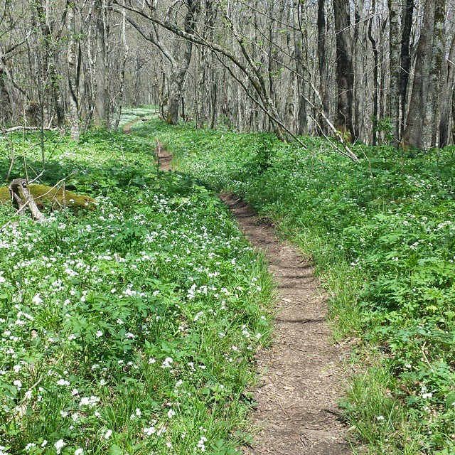 “…fair are the woodlands, robed in flowers of blooming spring…” This spread of white fringed phacelia ran on along both sides of the Trail for at least half a mile, maybe longer, coming down north of Big Bald. #at2015
