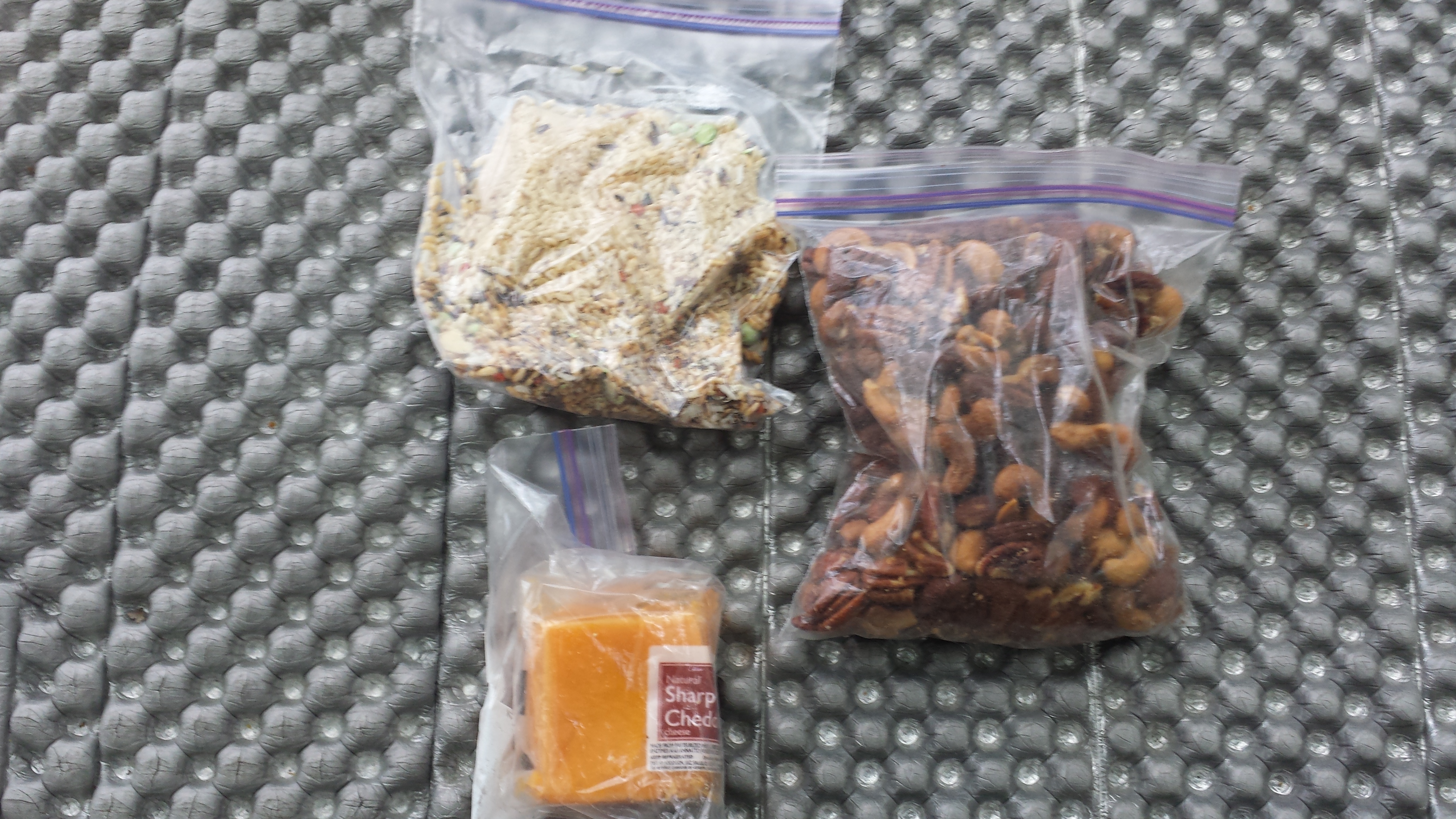 My snacks during the day are mostly the nuts, sometimes mixed with perhaps sesame sticks or a fried corn snack Ann has sent for variety.
