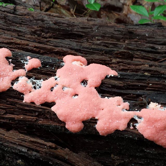 Fungi of the Appalachian Trail. (At least I’m perry sure it is a fungus.) This pink stuff was growing on a log in southern Pennsylvania. Fascinating stuff. #appalachiantrail #fungus #mushrooms #pennsylvania #AT2015