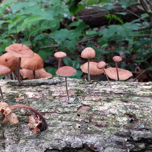 Fungi of the Appalachian Trail. I love the tiny stems of these small mushrooms growing on a log in southern Pennsylvania. #appalachiantrail #pennsylvania #fungus #mushrooms #AT2015