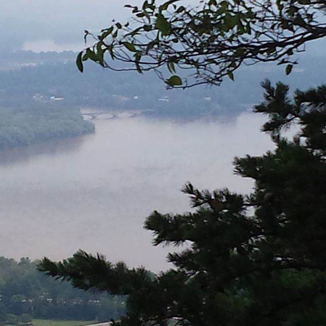 Bridges on the Appalachian Trail. A long distance view of the confluence of the Juniata and Susquehanna Rivers in central Pennsylvanua. The Appalachian Trail crosses that bridge in the distance over the Juniata before it then crosses the Susquehanna. #appalachiantrail #bridges #Pennsylvania #Juniata #Duncannon #at2015