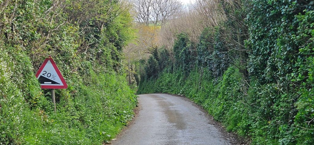 During the day when I’m out walking, I stick to the lanes and roads. No problems there, except that so many of the ones that my route uses are maybe a lane and a half wide. And since the Cornish farmers enjoyed building their hedges (now protected historic treasures) the sides of the roads are 6 to 10 foot high rugged plant matter usually with a core stone wall. (There’s some sort of sermon illustration in there.)