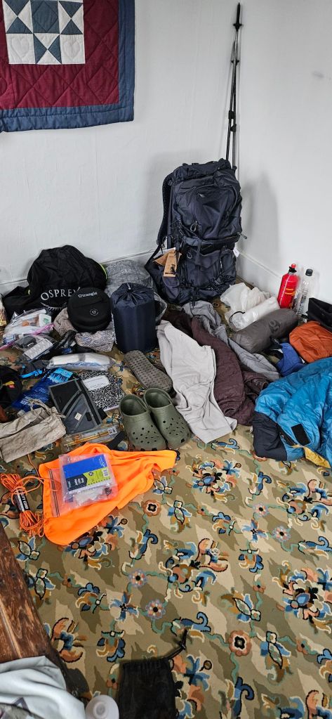 But I can’t take actual luggage as my carry on, because what would I do with it once I got to the UK? So I’m using a stuff sack. But that meant taking out the clothes that will be in the stuff sack when I’m walking.