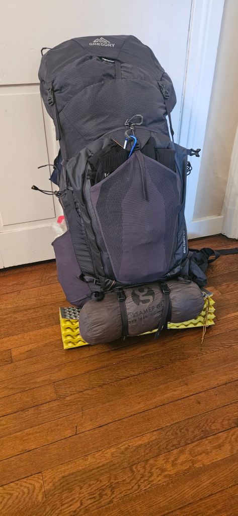 Before we head to the airport, it goes in its own large bag so that the straps and pockets don’t get eaten by the luggage handling equipment. Flying makes it harder in some ways to get to where I start walking.