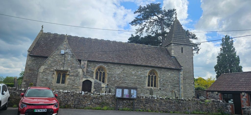 A few buildings in from that main road sits the church. Its long side faces the road. Its south side door (almost always the main entrance) was on the opposite side, facing the cemetery. I looked around for the 800 year old yew. But couldn’t locate it.