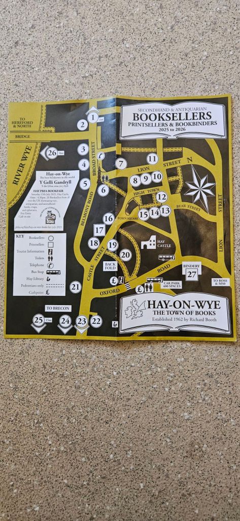 I’m sitting in the border village of Hay-on-Wye, Powys, Wales. It has over twenty bookshops, and is often described as a “town of books.” It is both the National Book Town of Wales and the site of the annual Hay Festival. The population is fewer than 2,000.